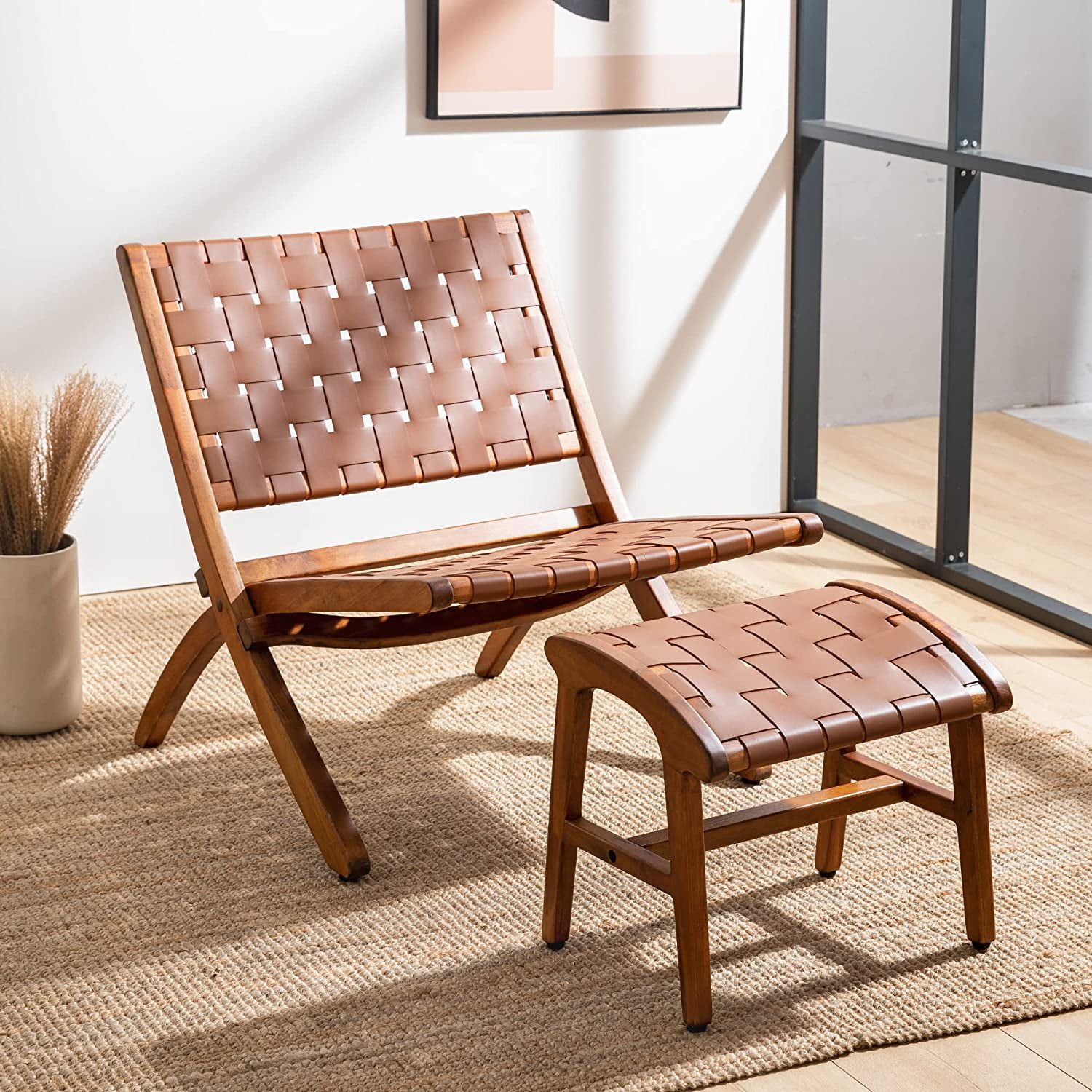 Lue Bona Foldable Woven Leather Accent Chair With Ottoman Midcentury Modern Lounge Chair Suitable For Indoor And Outdoor Brown Color Walmart Com
